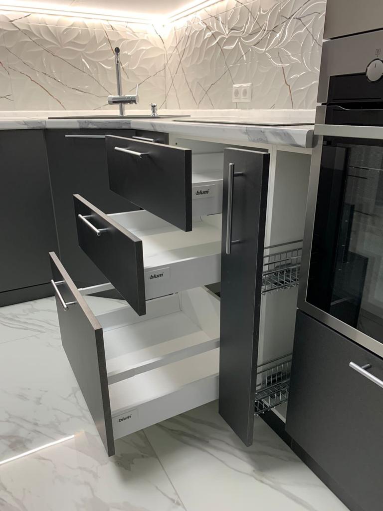 Наши кухни изготавливают на современном оборудовании и комплектуют только качественной фурнитурой BLUM, Hettich, Firmax, BOYARD